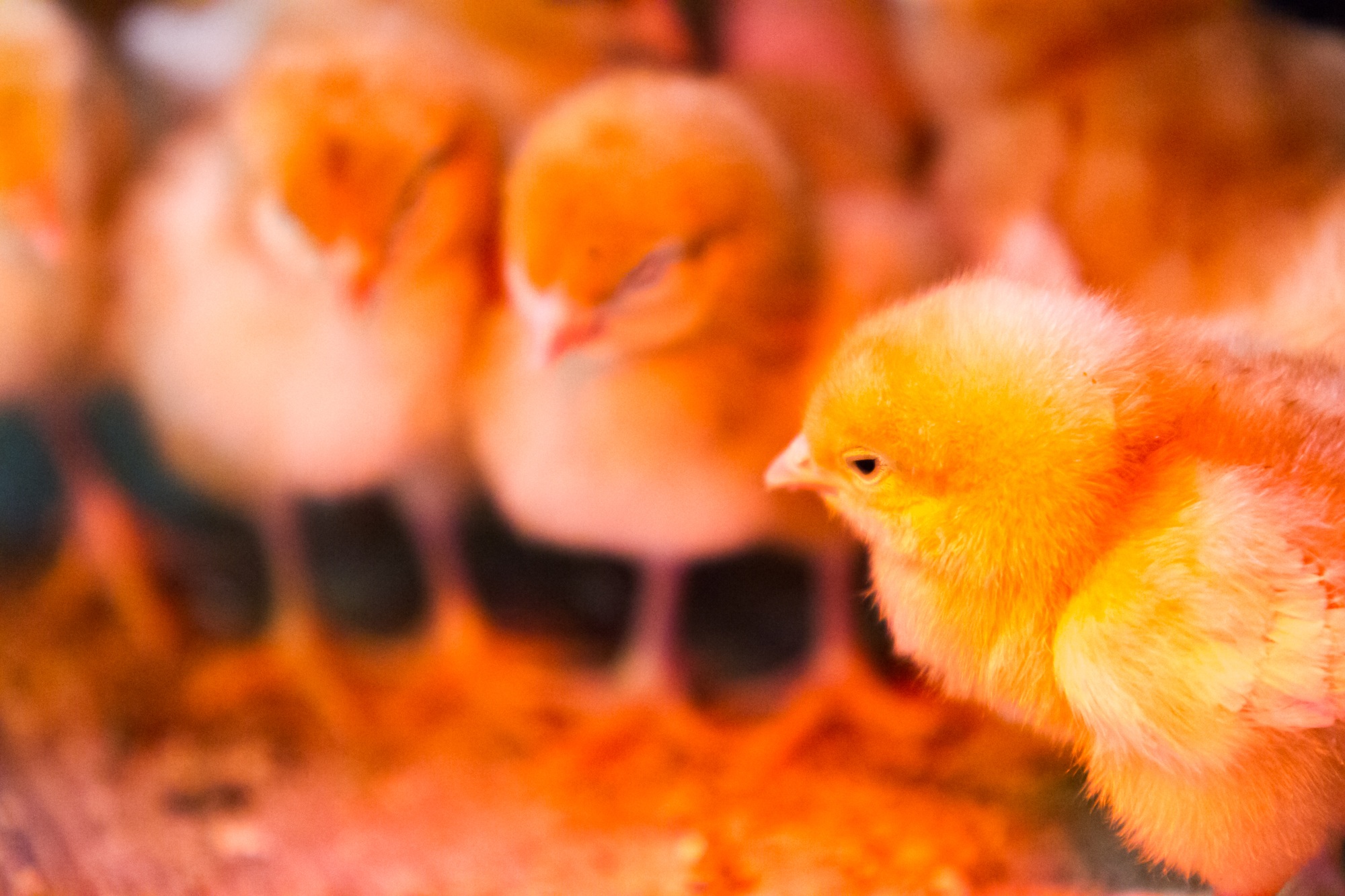 Yellow chicks foraging happily